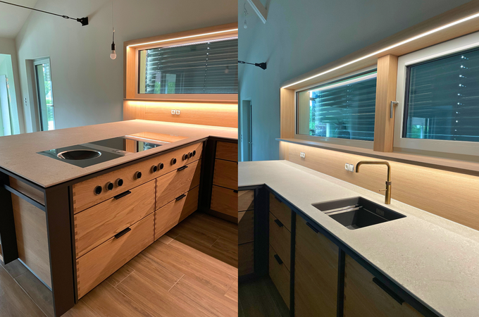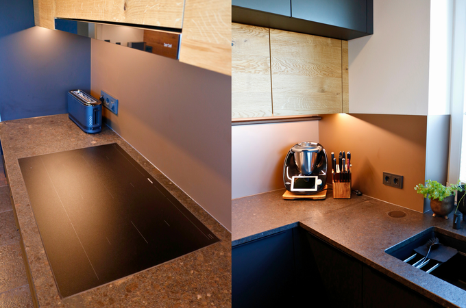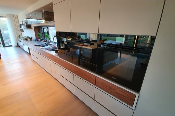 - Wandbündiger Einbau von zwei Bora X BO und passender Wärmeschublade