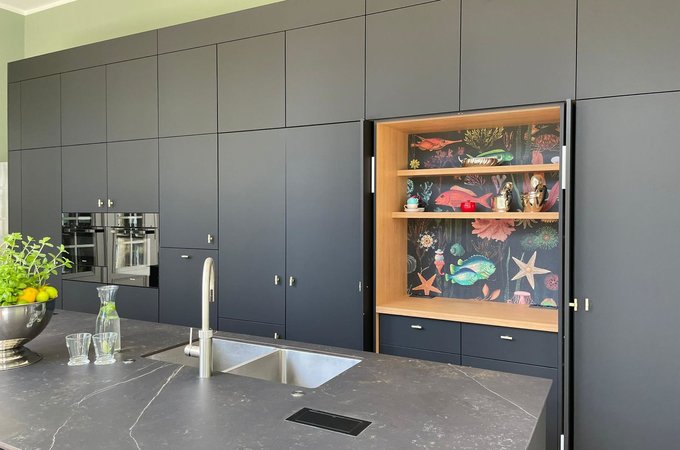 - Integrierter Kühlschrank, Tiefkühlfach und Quooker-Armatur für kochendes Wasser direkt aus dem Hahn