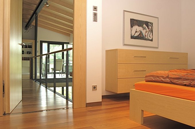 Wir setzen auf Vollholzmöbel, da diese nachweislich zu einem erholsameren Schlaf beitragen. Zirbenholz kann im Schlaf die Herzfrequenz senken und so die regenerative Erholung fördern. Massivholz-Betten verbessern zudem die Luftqualität, sind antistatisch und setzen keine schädlichen flüchtigen organischen Verbindungen (VOCs) frei. Der natürliche Duft und die Wärme des Holzes schaffen eine Atmosphäre der Geborgenheit und Entspannung.